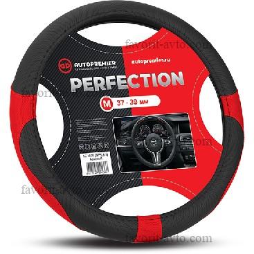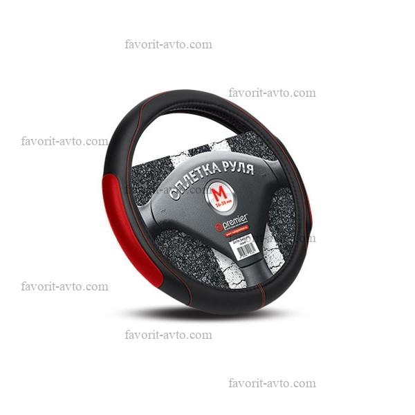 Оплётка руля AUTOPREMIER, эко кожа PU, перфорированная вставка, чёрный/красный, размер (М), 1/15, SU1200M |