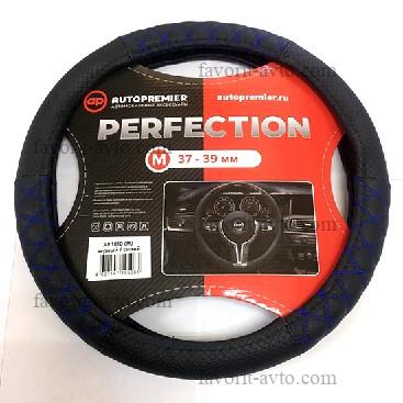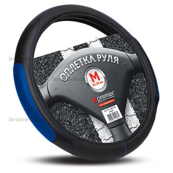 Оплётка руля AUTOPREMIER, кожа PU, перфорированная вставка, чёрный/синий, размер (М), 1/25, SU1100M |
