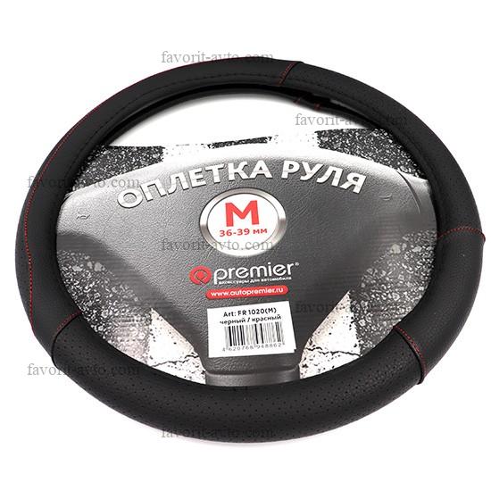 Оплётка руля PREMIER, кожа PU, перфорированная вставка, /ЧЁРНЫЙ-красная нить/, размер (М), 1/15, FR1020M |