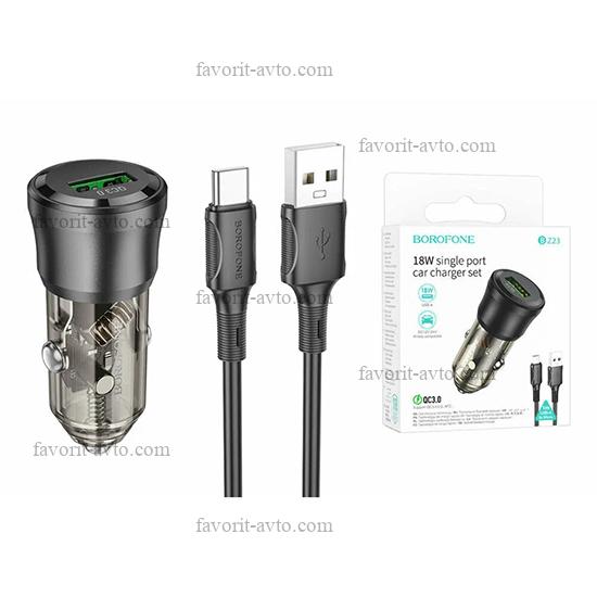 В пути! BOROFONE BZ23 Зарядное устройство в прикуриватель 1USB3.0 Quick Charger, прозрачный черный |