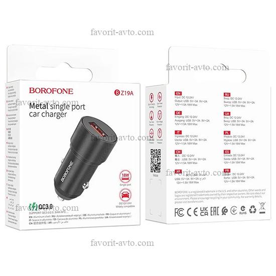 В пути! BOROFONE BZ19А Зарядное устройство в прикуриватель 1USB3.0 Quick Charger, черный |