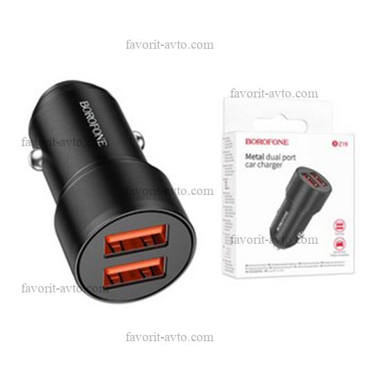 В пути! BOROFONE BZ19 Зарядное устройство в прикуриватель 2USB, черный |